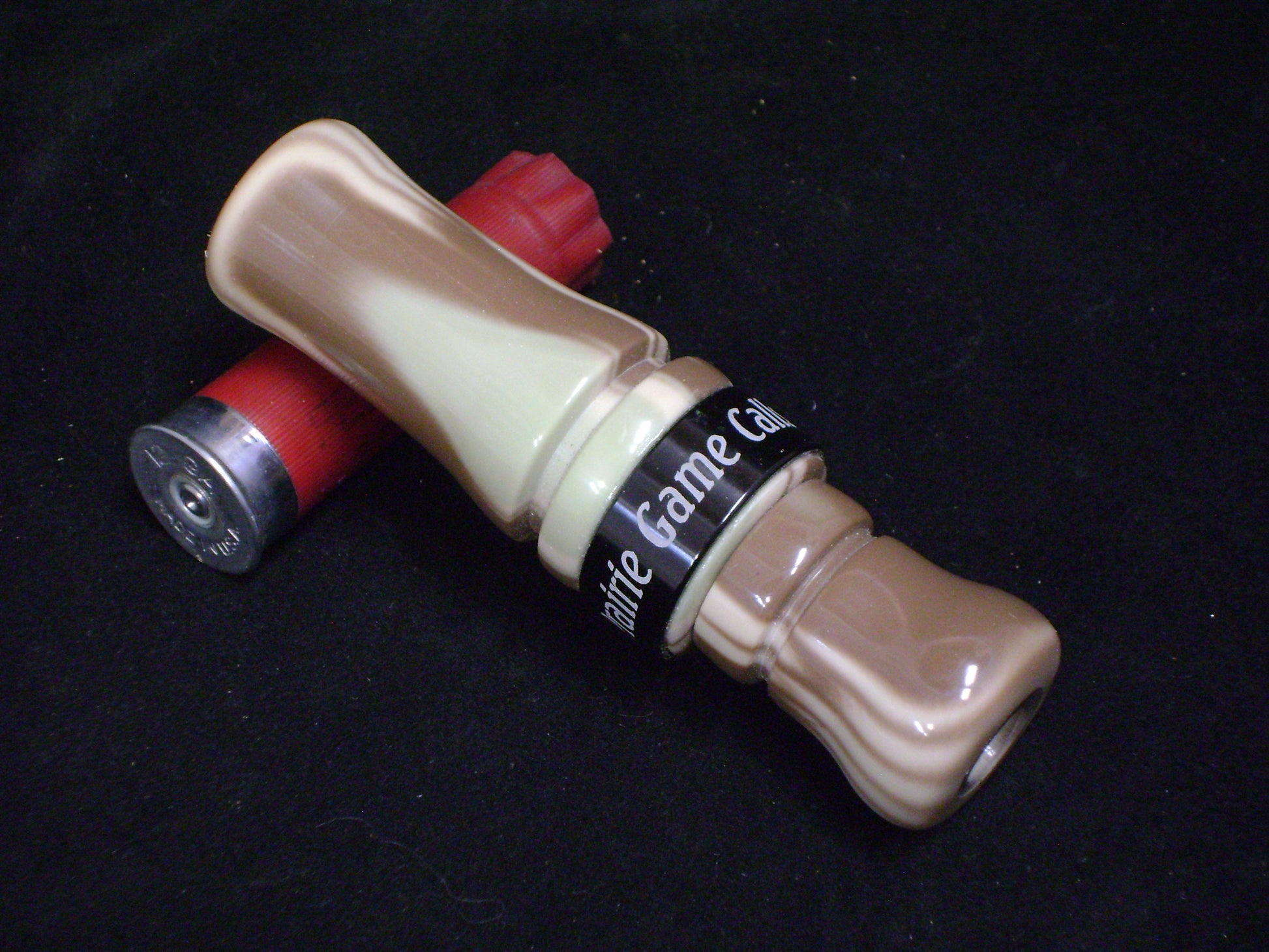 This is a all acrylic Mallard duck call. Hand cut tone board from my personal J-frame jig. The barrel of this call is made from Camo swirl polyester acrylic rod with a Camo Swirl colored exhaust and sleeved with clear acrylic for the tone board. Black anodized and laser engraved aluminum band on the barrel of the call. Call has good volume and nice low end rasp. Can be used for timber call or open water and will carry well. Easy to blow 10mm thickness single reed. Call bag included.