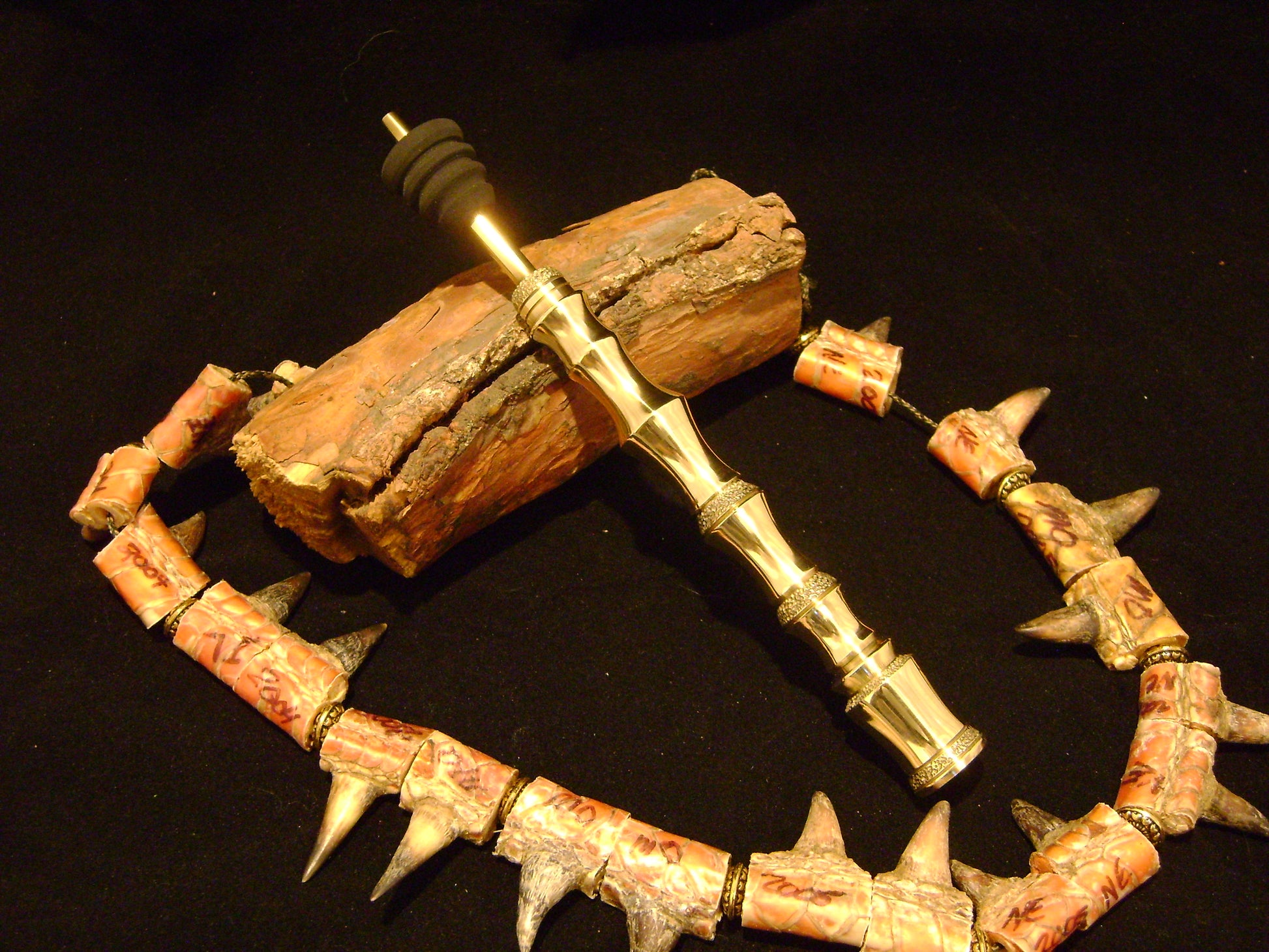 This beautiful instrument was turned from a solid piece of Brass. I turned this call by hand on my wood lathe not on a metal lathe. It takes an extreme amount of time and patience to make a call of this type. This call measures 8" long and has tapered internals to deliver a great turkey sound. The call sports a high polish and tasteful stippling along it's many contours. This is the third call of it's kind I have made and considered very collectable. Beautiful yelps, cutts, clucks, and KeeKees are produced from this turkey instrument.