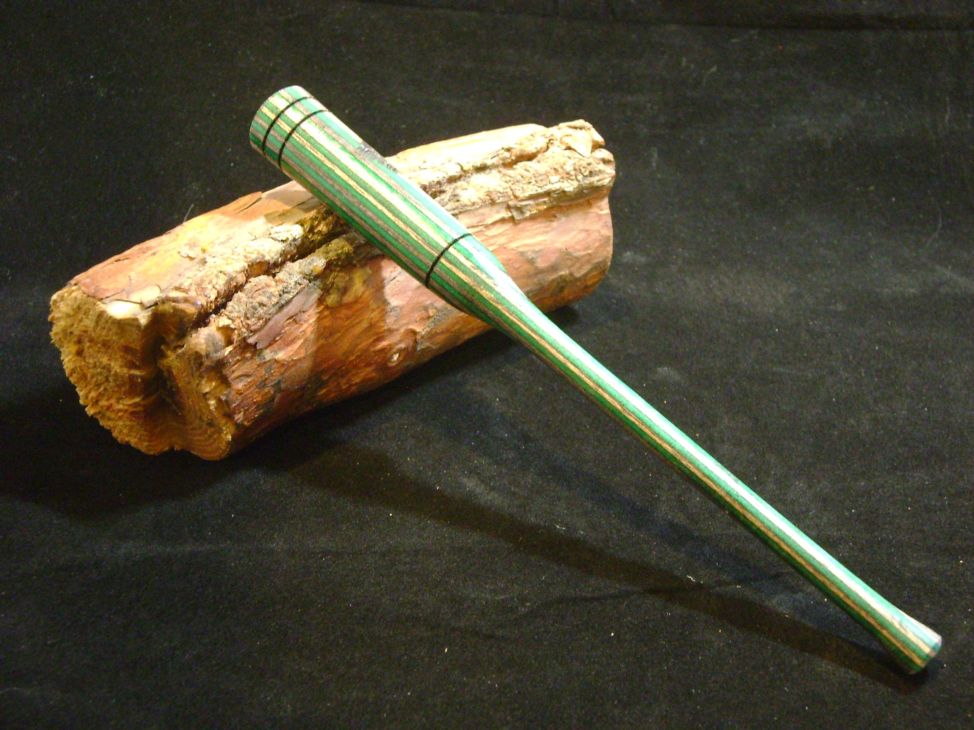 Colorwood is a medium weight tight grain man made wood from Baltic Birch. This is called Spring Green color with green and gray layers throughout the wood. Medium pitch tones from this wood. Works well on all call surfaces and is a favorite.